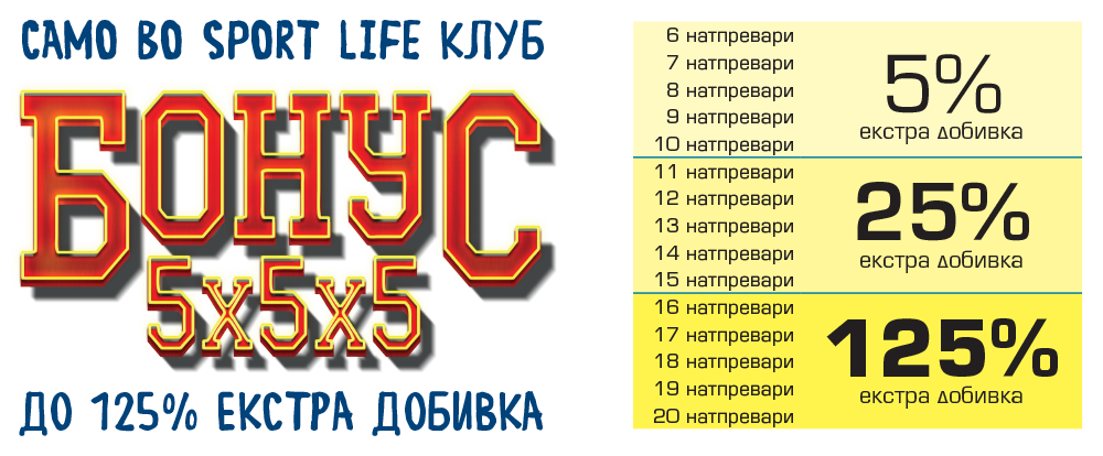 • Акцијата важи само за тикетите уплатени со приложена Sport Life клуб-картичка на кои се одиграни 6 или повеќе натпревари.